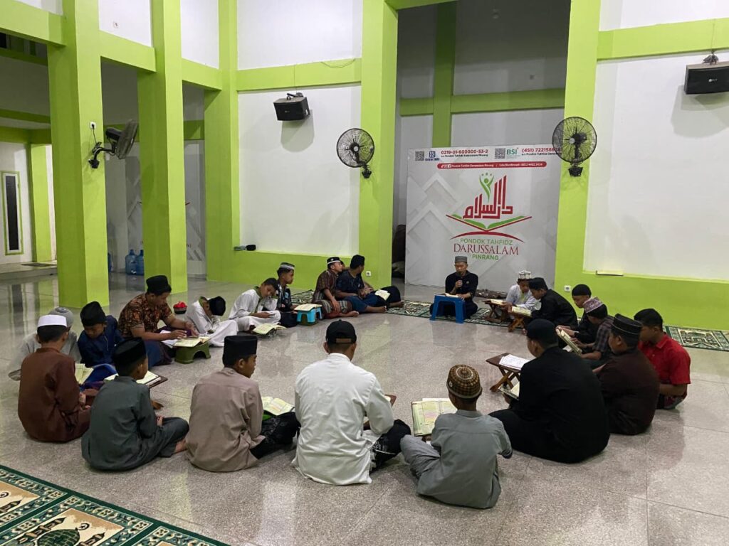 Lingkungan belajar yang tenang dan religius menjadi salah satu kekuatan utama pondok ini. Rak-rak kitab di sekitar ruangan serta suasana masjid yang bersih dan lapang mendukung konsentrasi santri dalam menghafal kalam Allah. Kegiatan halaqah ini rutin dilaksanakan sebagai bagian dari program inti pondok, baik untuk santri pemula maupun lanjutan.