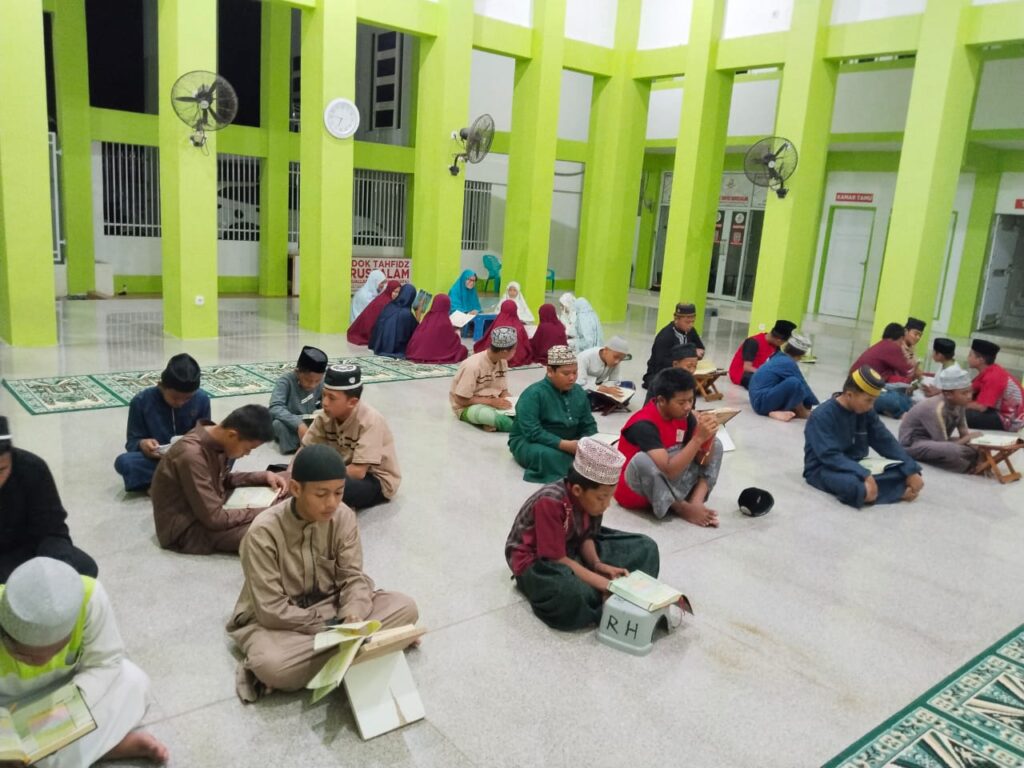 Para santri duduk rapi di atas lantai masjid, masing-masing memegang mushaf dan papan alas membaca. Dengan penuh kesungguhan, mereka mengulang hafalan, memperbaiki bacaan, serta menjaga kelancaran ayat-ayat Al-Qur’an yang telah dihafalkan. Kegiatan ini menjadi bagian penting dalam proses pembinaan tahfidz agar hafalan tetap terjaga dengan baik.